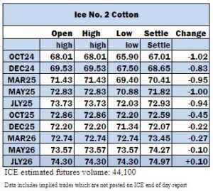 ICE cotton futures end on negative note
