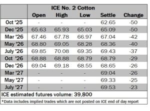 ICE No. 2 cotton settles on losses