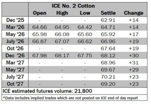 ICE No. 2 cotton settles to the upside