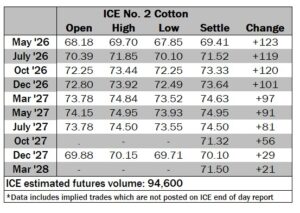 ICE No. 2 cotton settles on strong gains
