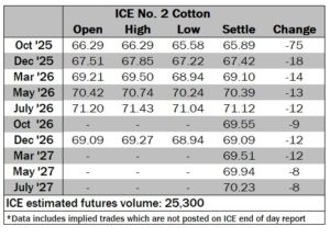 ICE No. 2 cotton settles modestly lower