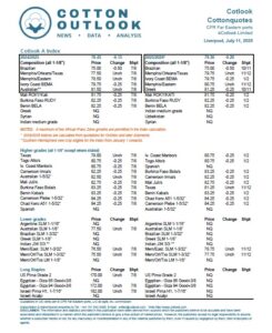 A daily report giving the Cotlook A Index and constituent prices, and a range of other representative CFR Far Eastern quotations, including long staple varieties.
